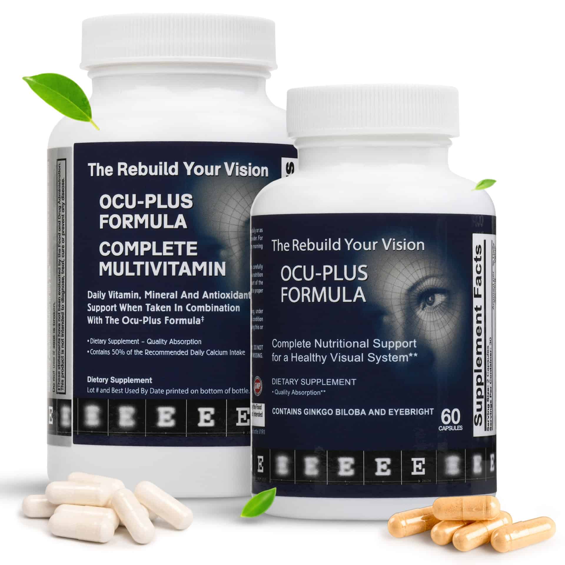The Rebuild Your Vision Ocu-Plus Formula and Ocu-Plus Complete Multivitamin work together to provide all the nutrients needed for full protection and complete health and vision support. Just see for yourself!